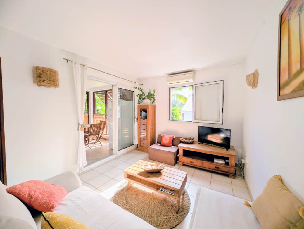 🛋️ Salon climatisé avec canapé convertible.
